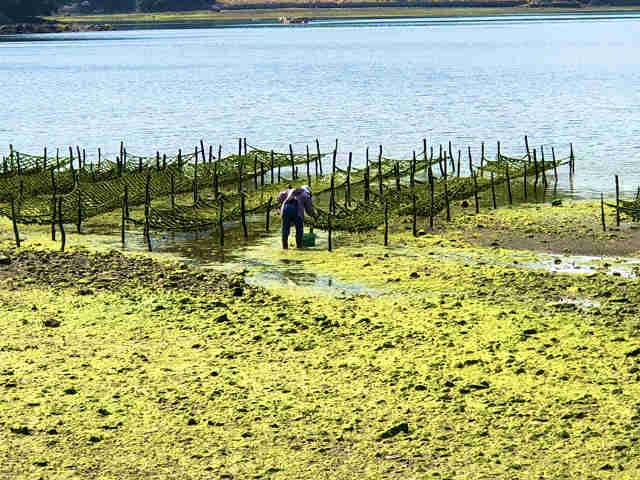 上五島町の春は、あおさ摘みをするお母さんたちの「あおこらよ~、きれかとよ~」の声ではじまります。「あおさ」はヒトエグサ(一重草)と言われる海苔の一種で、潮の満ち引きの強い浅海の岩礁などに付着して繁殖するので、海岸の岩場一面に生えている様は新緑のじゅうたんを敷きつめたようです。