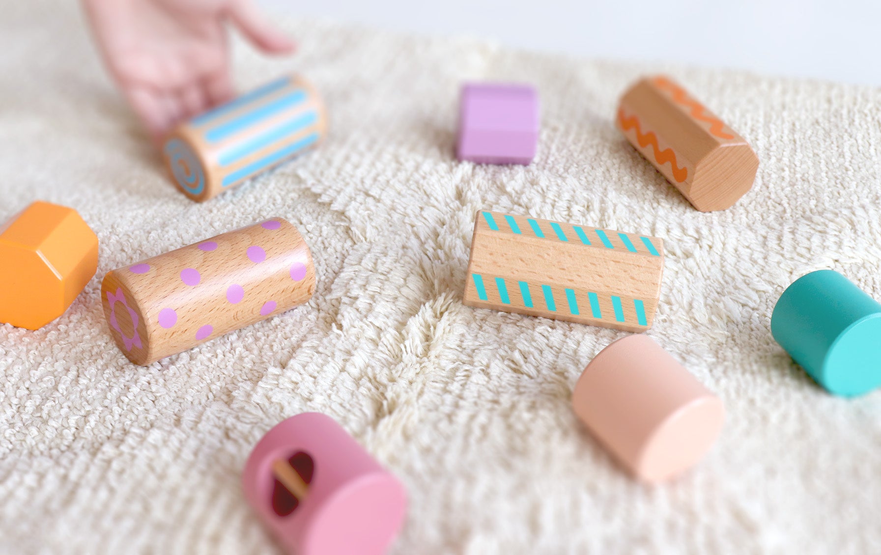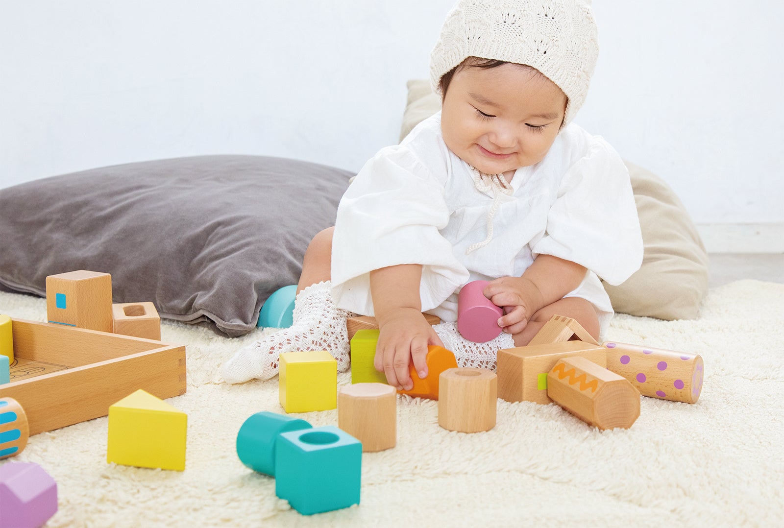 音いっぱいつみきの約2倍のボリュームで、きょうだいやお友達とも一緒に遊べます。積み上げるだけでなく、色んなものに見立てて遊びやすいので、お子さまが成長しても長く楽しんでいただけます。