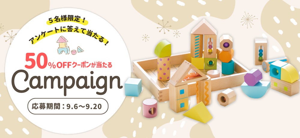 抽選で対象商品が50%OFFで買えるクーポンを5名様にプレゼントいたします。