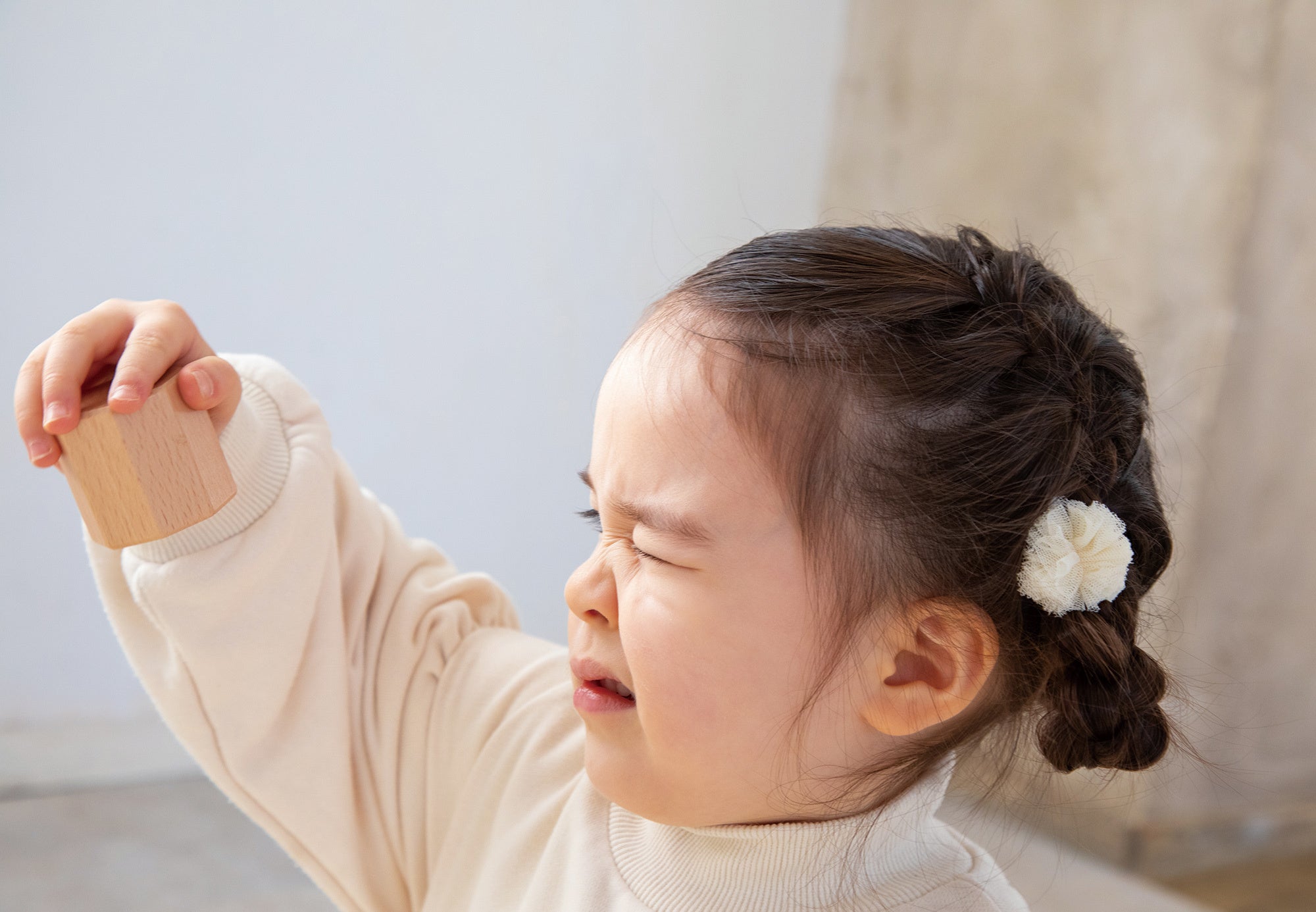 基尺(きじゃく)とは、つみきセットの一番小さい立方体の1辺の長さのことで、つみきの基本となる寸法を意味します。この基尺が揃っていないと、複数のつみきを積んだ時に高さが揃わず、「おうちをつくる」などの見立てあそびが難しくなってしまいます。音いっぱいつみきは大きめの4.5cmで揃えているので小さな手でも扱いやすく、ぴったり揃えて積み上げることができます。
