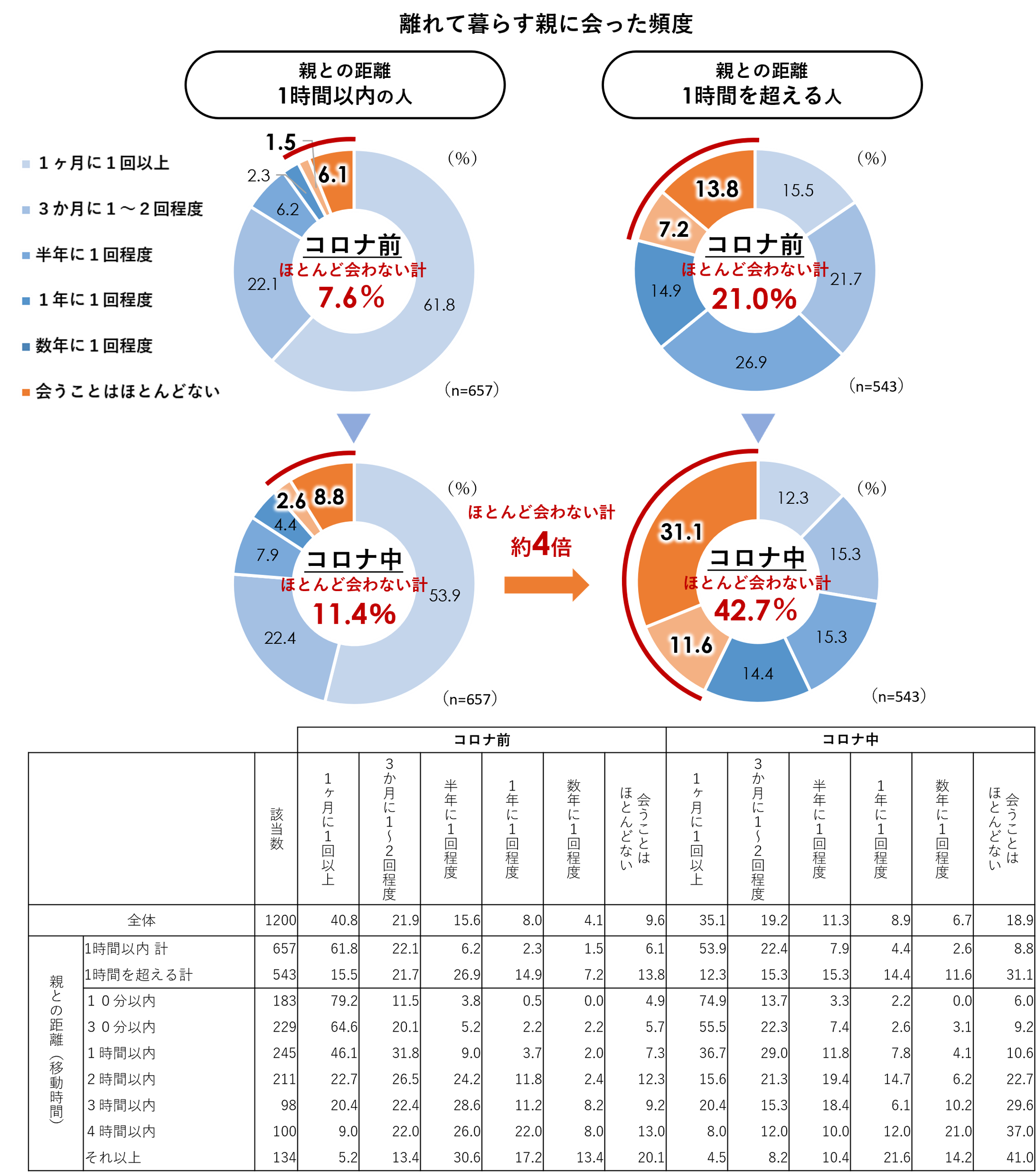 ◇コロナ禍で“親に会えなくなった”人の差 4倍!実家との距離1時間の壁。
