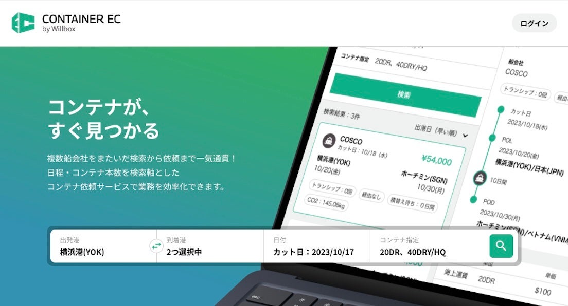 国際物流プラットフォームを開発・運営するWillbox株式会社(本社:神奈川県横浜市、代表:神一誠、以下:Willbox)は、新たに海上コンテナ手配専用サービス「Container EC(コンテナ イーシー)」を1月31日にリリースいたします。