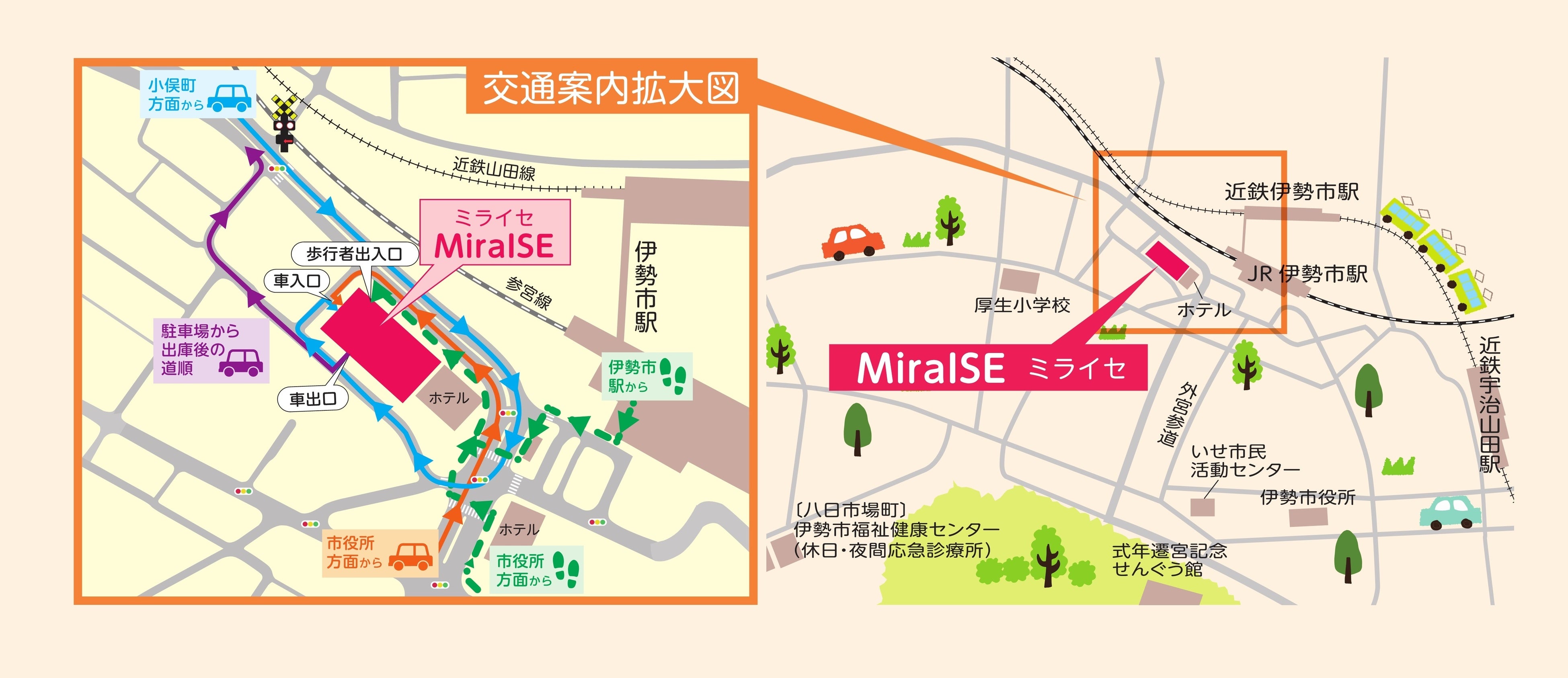 伊勢市駅前ビル「MiraISE」5階から7階に窓口を設置しています。