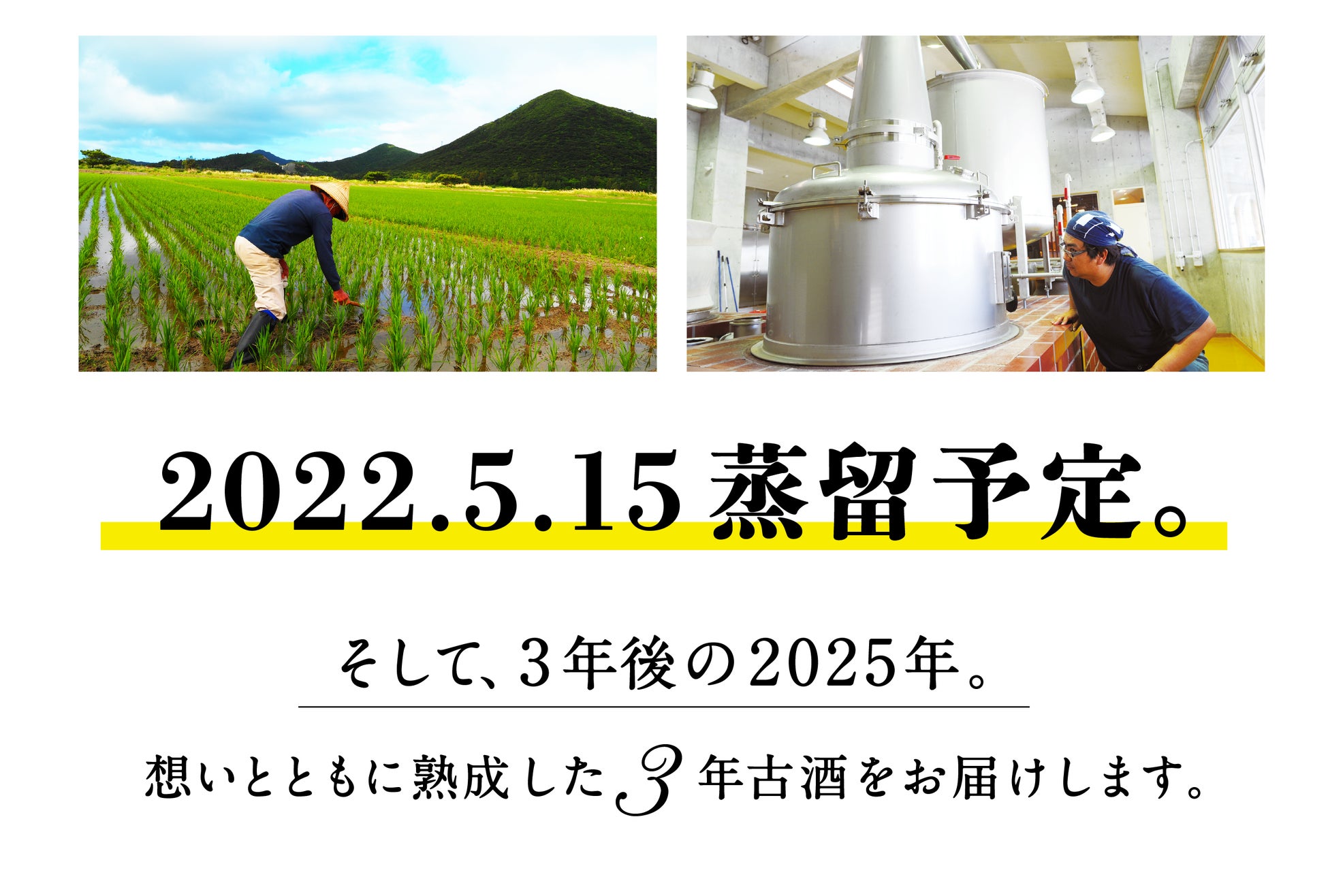 本プロジェクトの「忠孝 Okinawa terroir 3年古酒」は 沖縄復帰50周年を迎える2022年5月15日に蒸留予定。 古酒に育った2025年にお届けします。