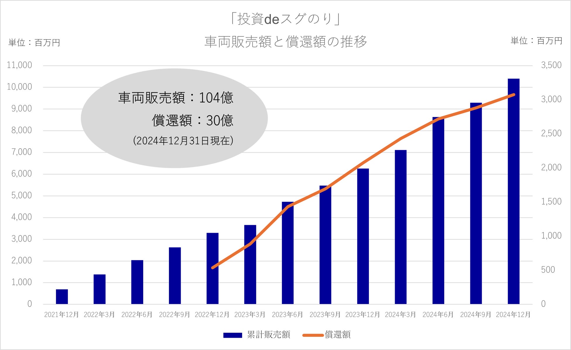 トラックの売買、リース・レンタル、整備、運送等をワンストップで提供する株式会社タカネットサービス(本社:神奈川県横浜市、代表取締役:西口高生、以下弊社)は、 トラックを投資対象としたオペレーティングリース商品「投資deスグのり」の累計販売額が、2021年11月の販売開始から3年1か月で100億円を達成するとともに、償還額が30億円となったことをお知らせします。(2024年12月31日現在)