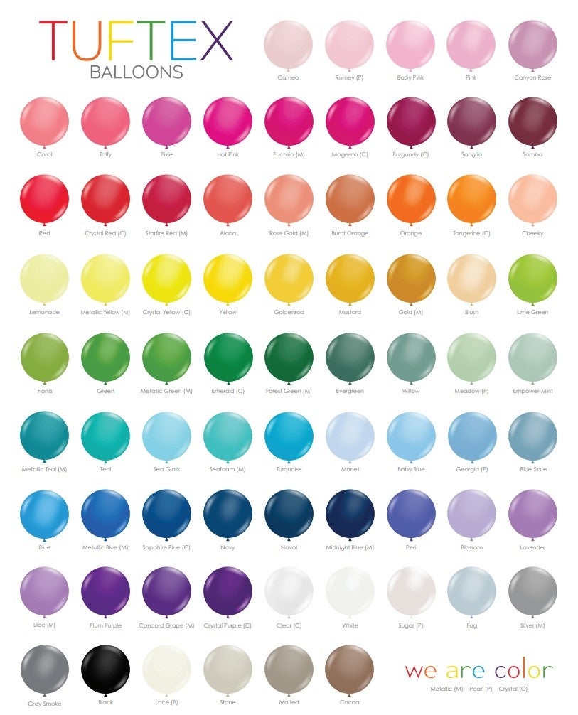 タフテックスバルーンは1915年創業、アメリカ産のゴム風船ブランドです。ブランド名から想像がつく通り、ゴム量が多くしっかりとしたプレミアムな品質と、きめ細やかできれいで艶やかな見た目が特徴となります。生産拠点はオハイオ州でありながら本社をニューヨークに置き、トレンドの発信地から得られた情報をもとに考案されるバルーンカラーは、日本人からは想像もつかないようなクリエイティブな発色です。タフテックスのカラーバリエーションは、世界中のゴム風船業界のトレンドを作り出しているといっても過言ではありません。