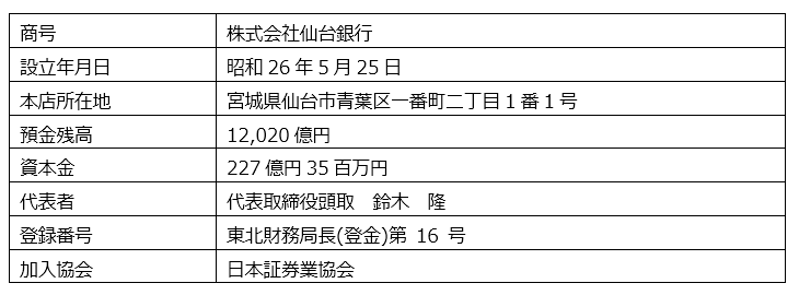 仙台銀行の会社概要(2022年3月31日現在)