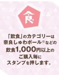 「飲食」のカテゴリーは奈良しゅわボール※などの飲食1,000円以上のご購入毎にスタンプを押します。