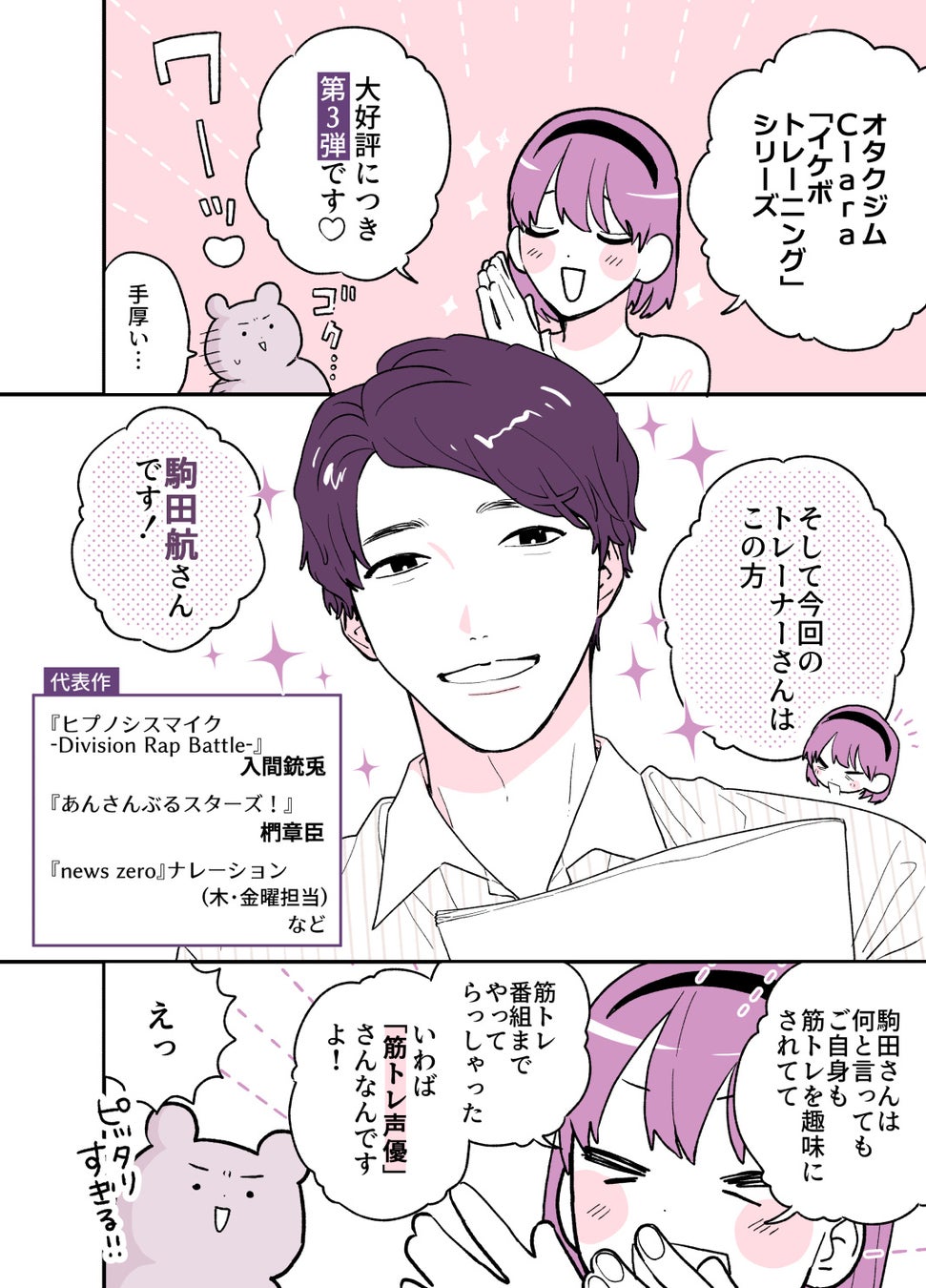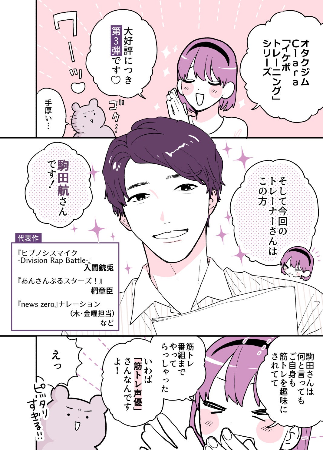 【第3弾は駒田航さん】大反響!オタク女子ジム「Clara」人気男性声優によるイケボトレーニング企画、4月15日(土)より店頭公開!