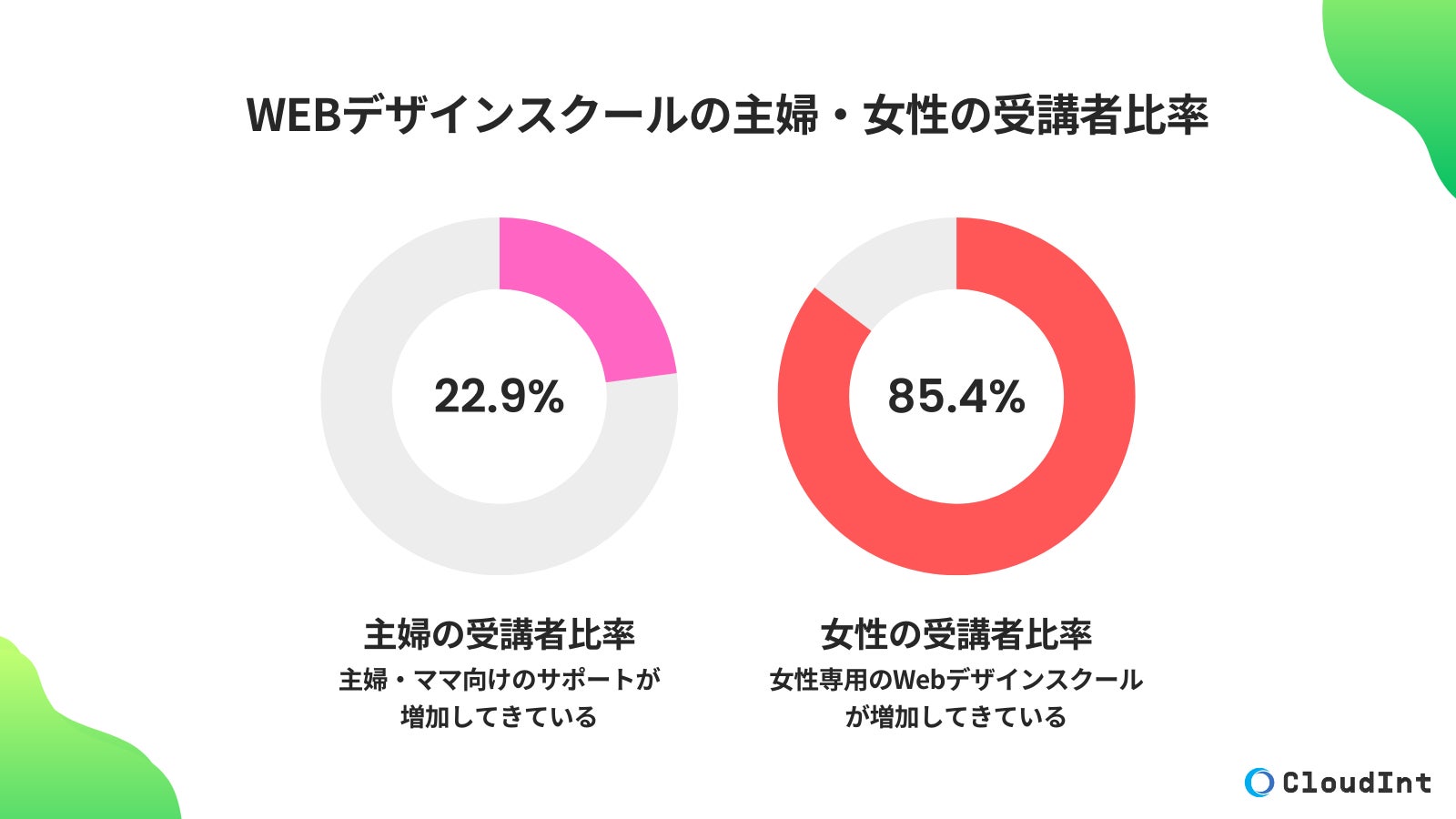Webデザインスクール情報メディア「CloudInt」は、Webデザインスクールにおける主婦・女性受講者の比率に関する調査結果を発表しました。