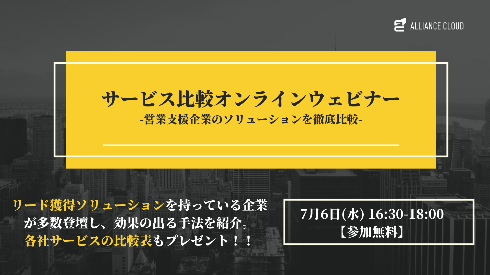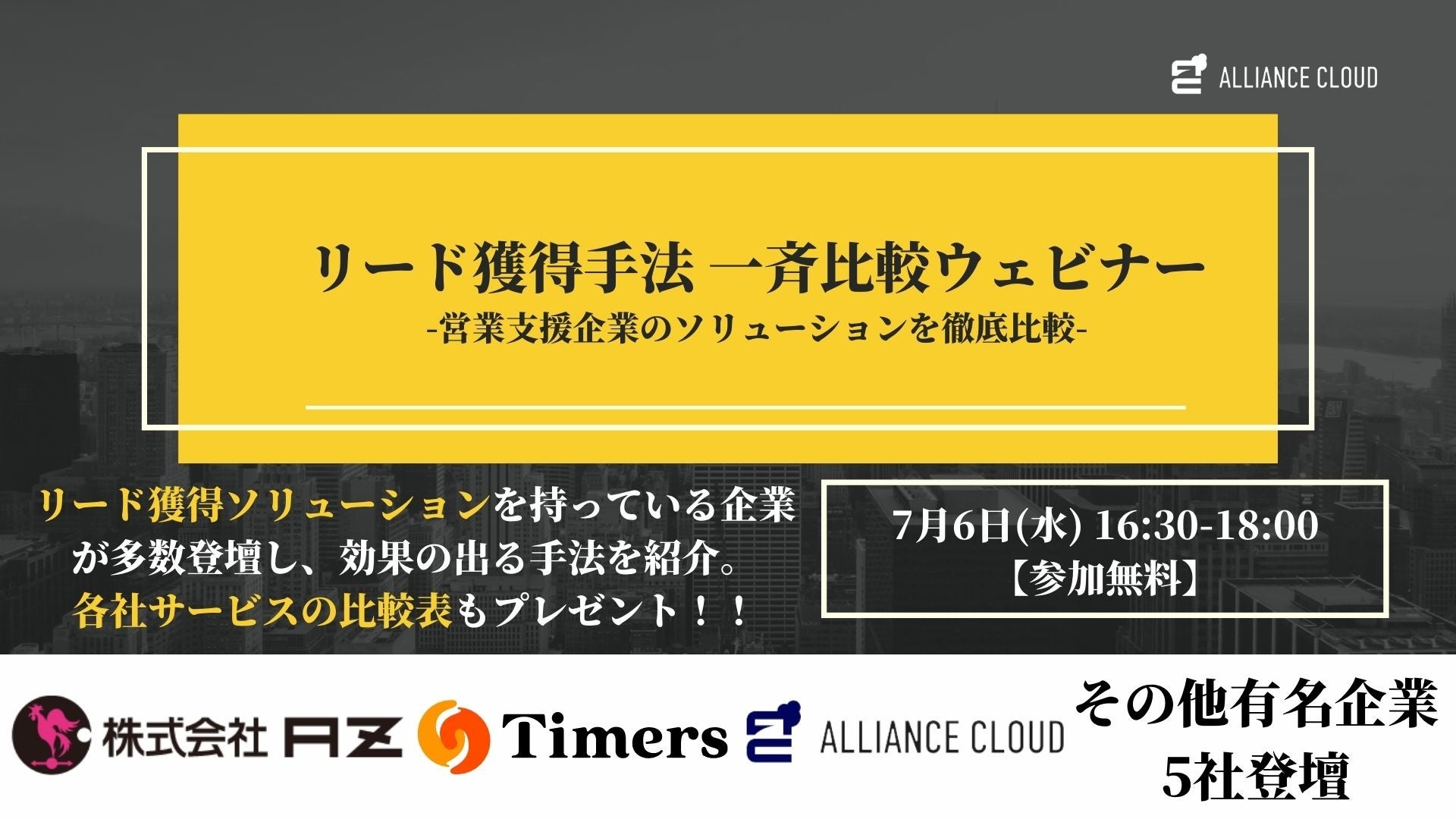 リード獲得施策を徹底比較「リード獲得手法一斉比較ウェビナー」開催<7/6(水)16:30〜18:00 @zoom>