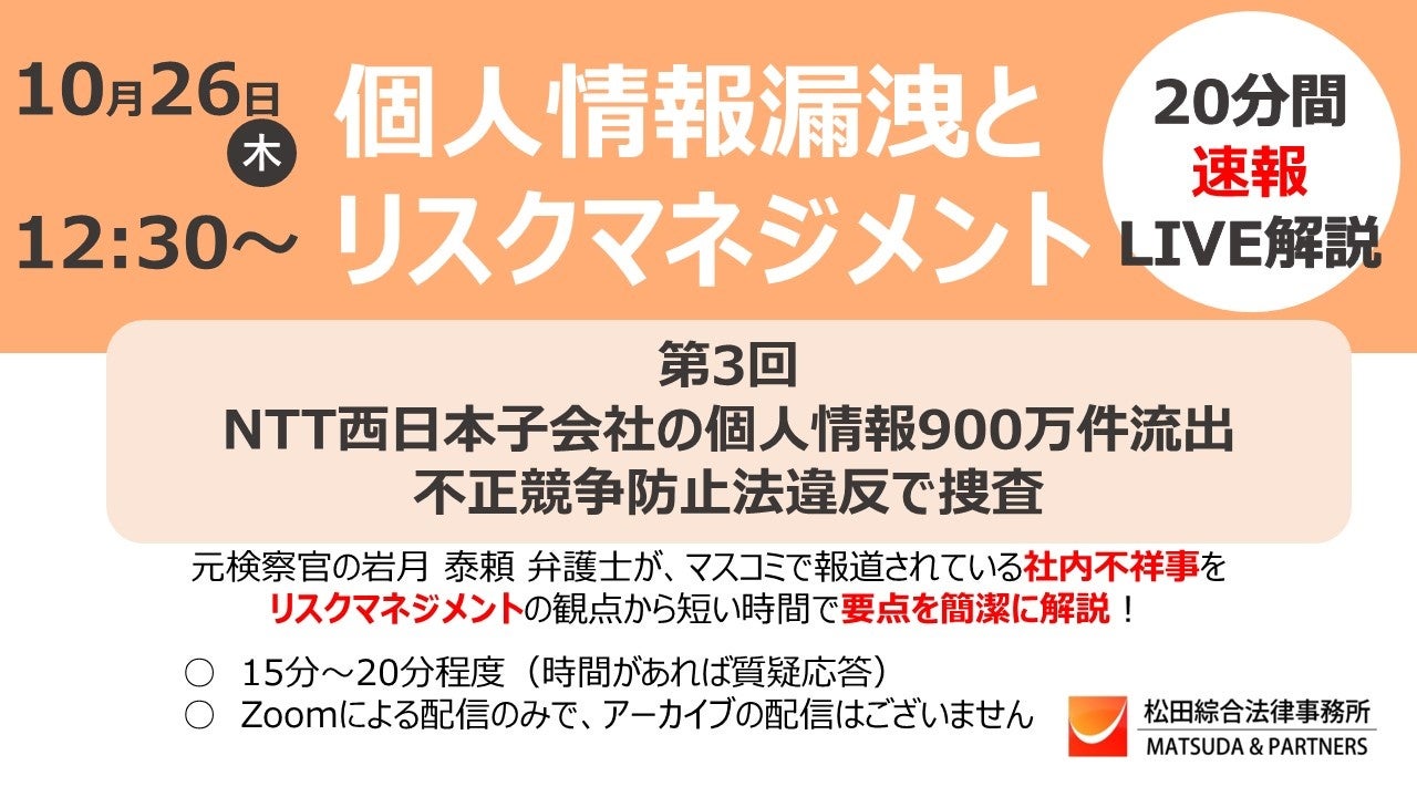 【速報Live解説!】第3回「NTT西日本子会社の個人情報900万件流出 不正競争防止法違反で捜査」