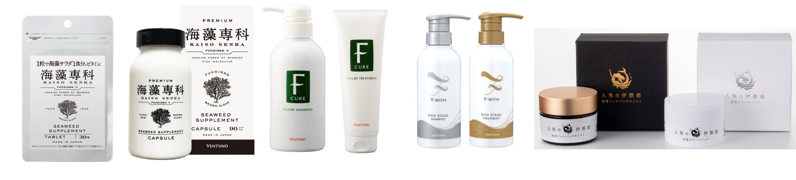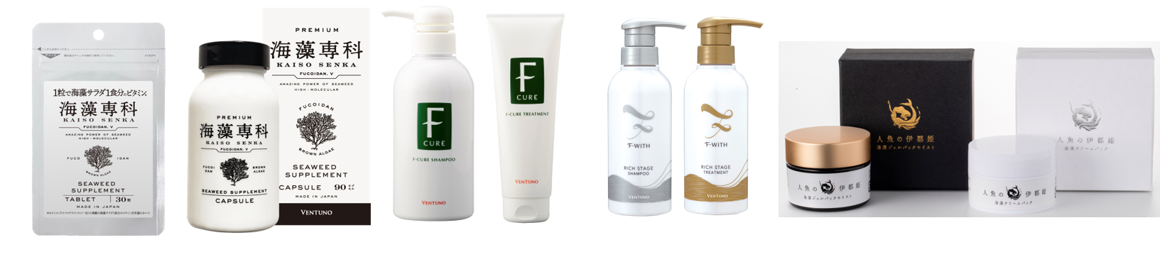 さらに、今回ポップアップストアでは「海藻専科」以外にも、通常はオンラインでしか販売していない、海藻成分フコイダンを配合したヴェントゥーノオリジナルのヘアケア商品やスキンケア商品を特別に店頭で販売しております。この貴重な機会にお手に取ってご覧くださいませ。