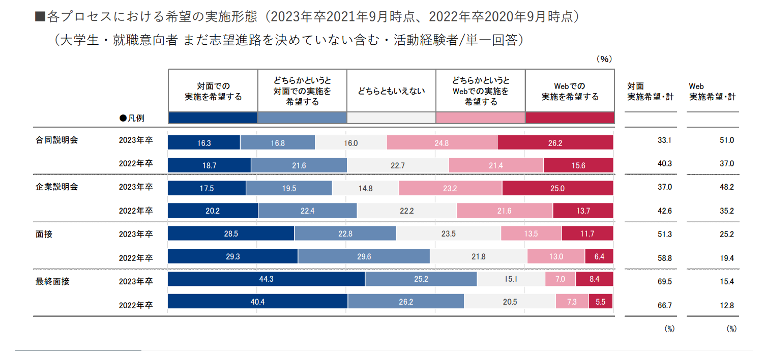 参考:合同説明会をWEBで実施して欲しい学生の割合が初の50%超え(増加傾向)
