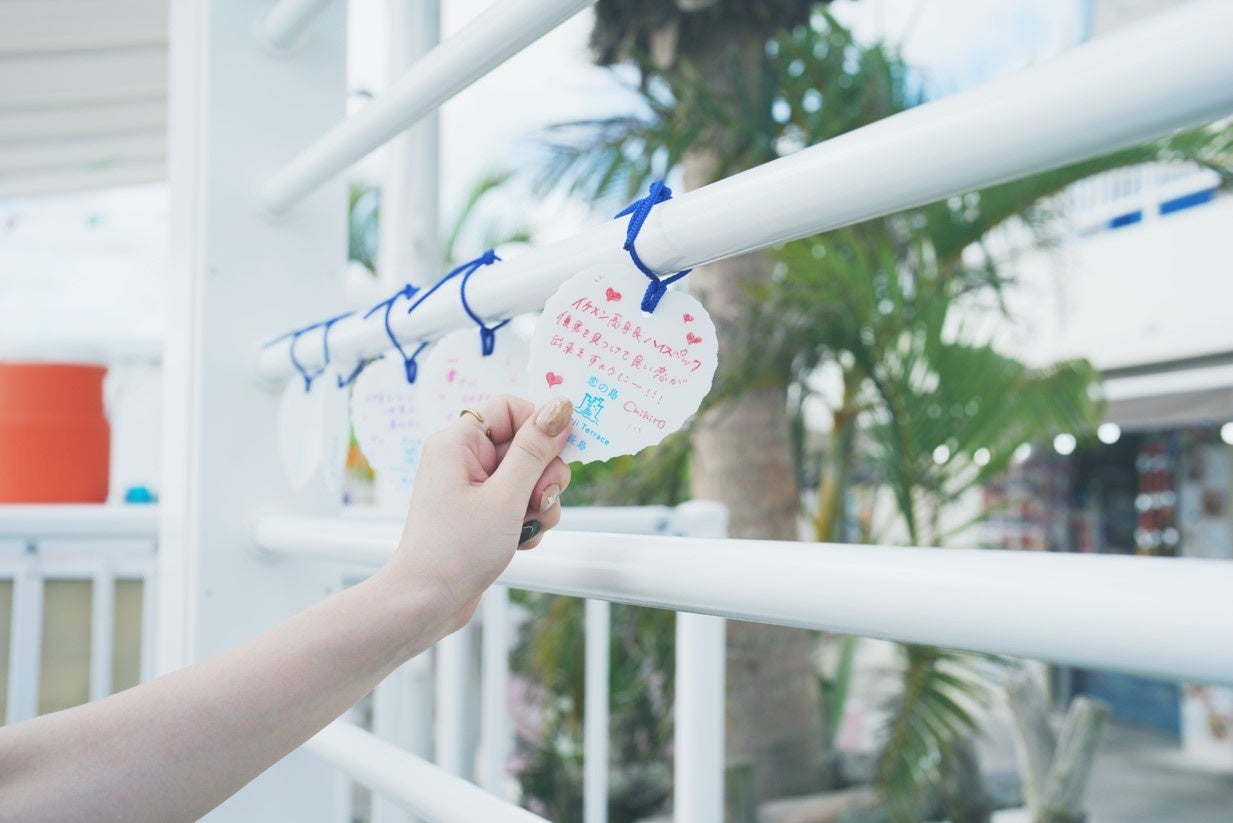海外メディアも注目 “恋の島” 瀬長島ウミカジテラス恋のテラスで恋愛祈願 ハートの貝の絵馬が誕生