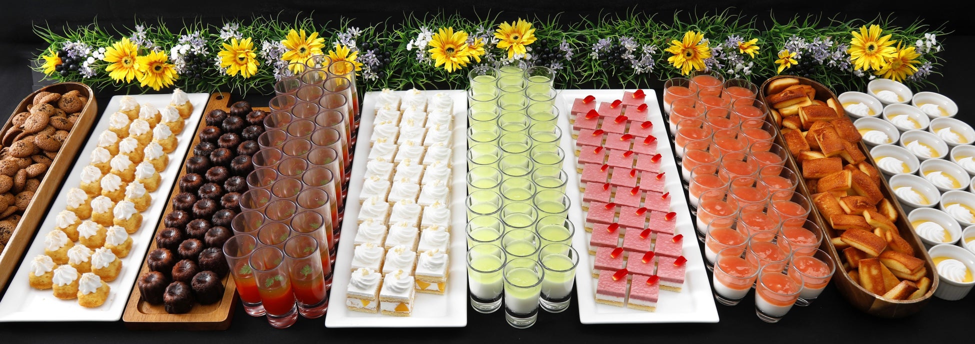 ひんやりとした冷たいグラスデザートや、さっぱりくちどけの良いムースのケーキなど、どれを食べようか迷ってしまう色とりどりのデザートは、目で見て味わって2度おいしい、暑い夏にぴったりなデザートに仕上がっております。