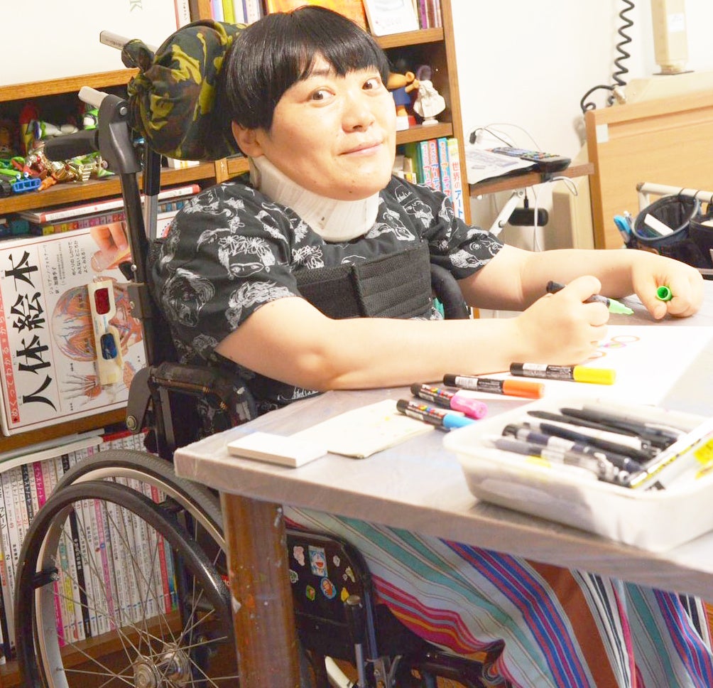 世界で5例と言われる希少難病と戦いながら「描くことは生きること。生きることは描くこと」を信念として、自分の頭の中に浮かぶ「カラフルな空想と夢の世界」をテーマとして日々活き活きとした作品を生み出し続けています。