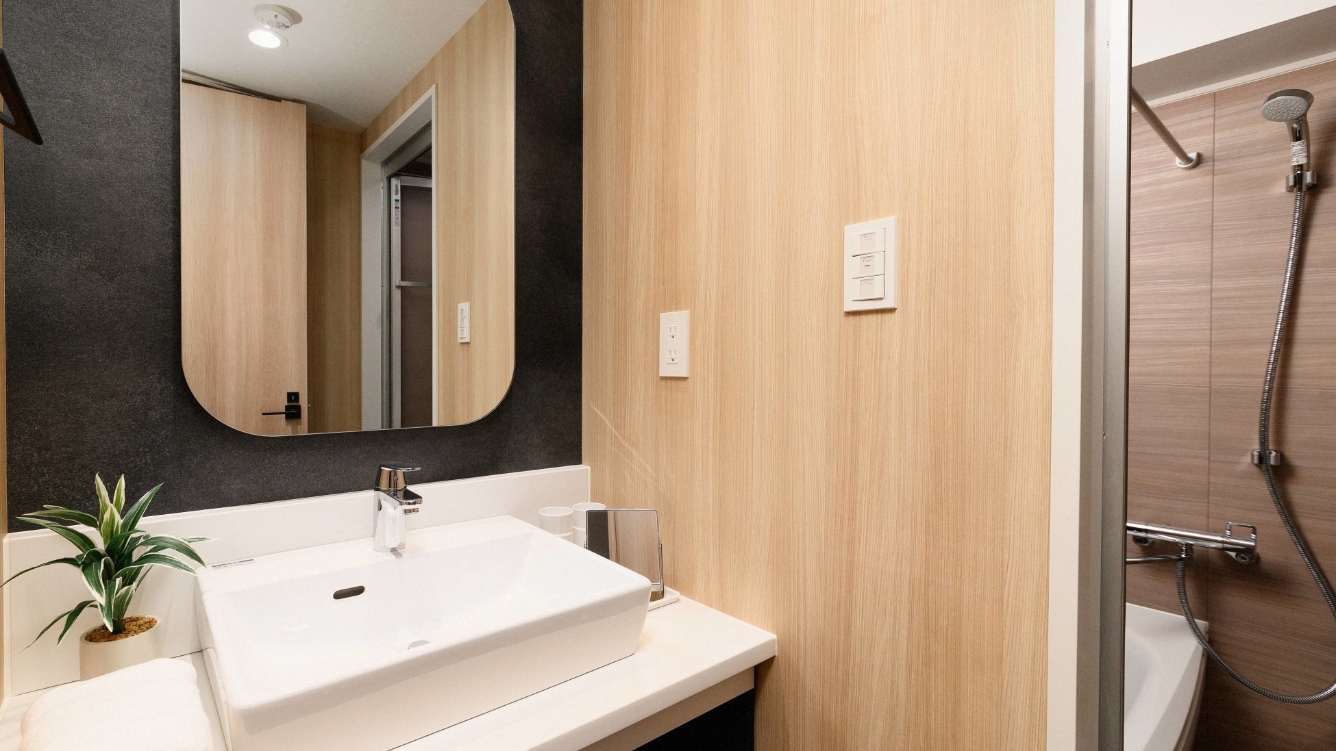 湯船のある広いバスルームを備え、ホテル内にはランドリールームも。