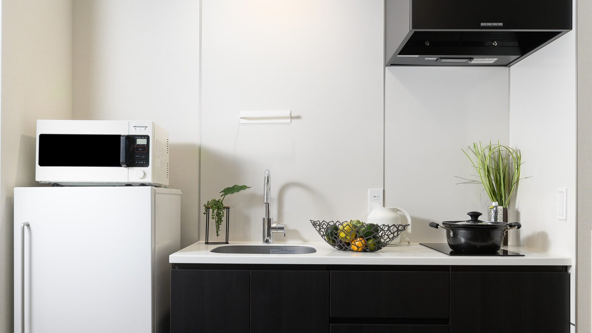 4名まで泊まれる和洋室タイプのお部屋には、キッチン、リビング・ダイニングスペース、