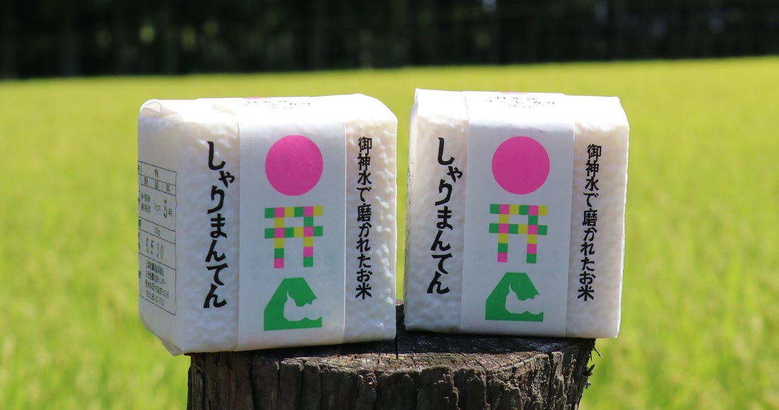 (2)御神水で磨かれたお米「しゃりまんてん」販売 ~2合パッケージ/1個500円(税込)