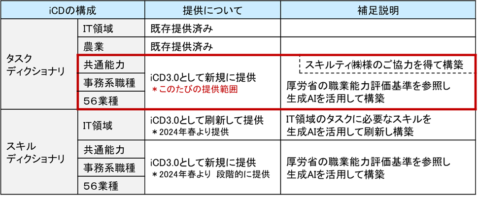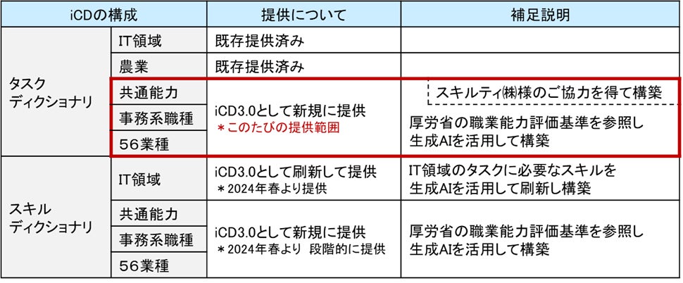 企業における人的資本経営とDX推進に資することを目的として、iCDに対し「IT領域以外への拡張」をはじめとした大幅な更新を行い、「iCD3.0」の中核となるタスクディクショナリの提供を開始