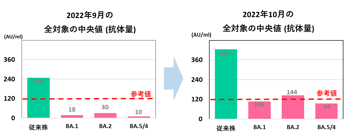 そのため、当社では引き続きオミクロン株(BA.5)ワクチン接種後のBA.5に対する抗体量の変化を調査し、後日、結果を報告する予定です。
