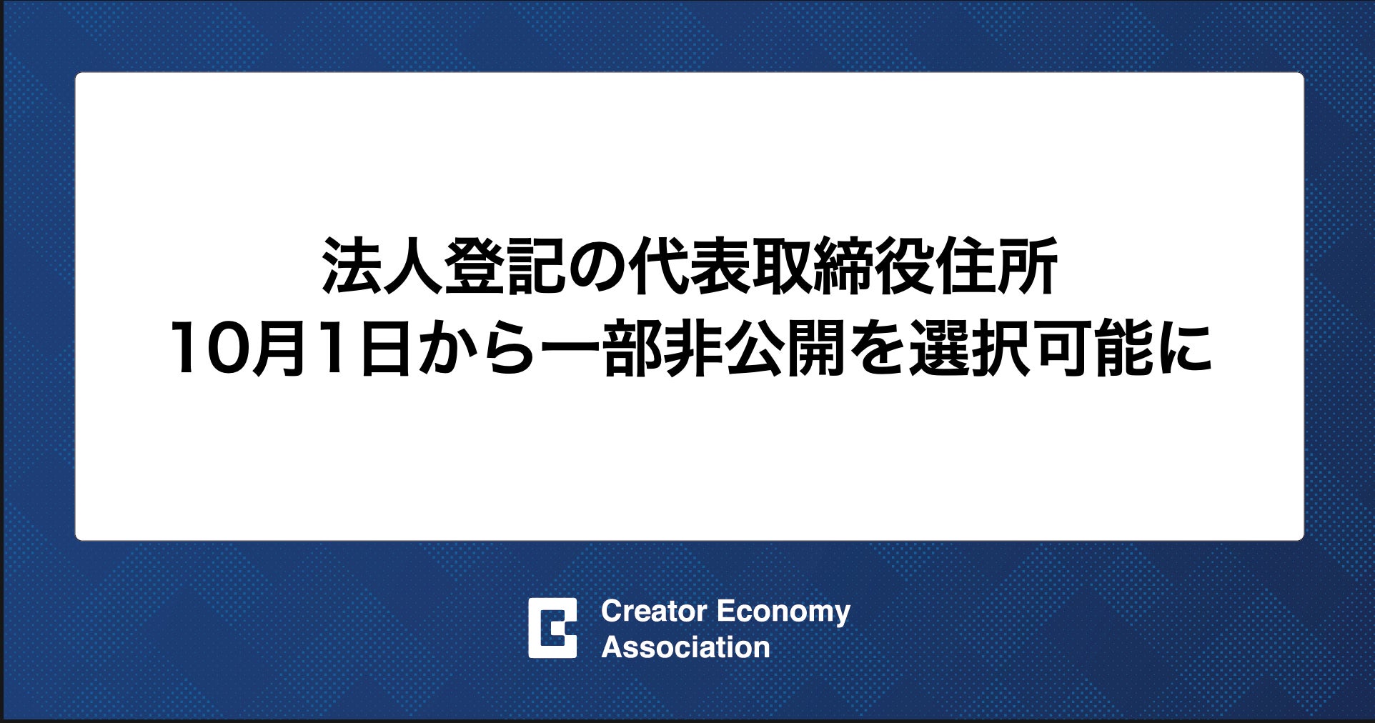 現在の法人登記の制度では、代表取締役の自宅の住所が公開されることになっています。しかし、この制度はクリエイターがステップアップのために法人化する際に、大きなハードルとなっていました。