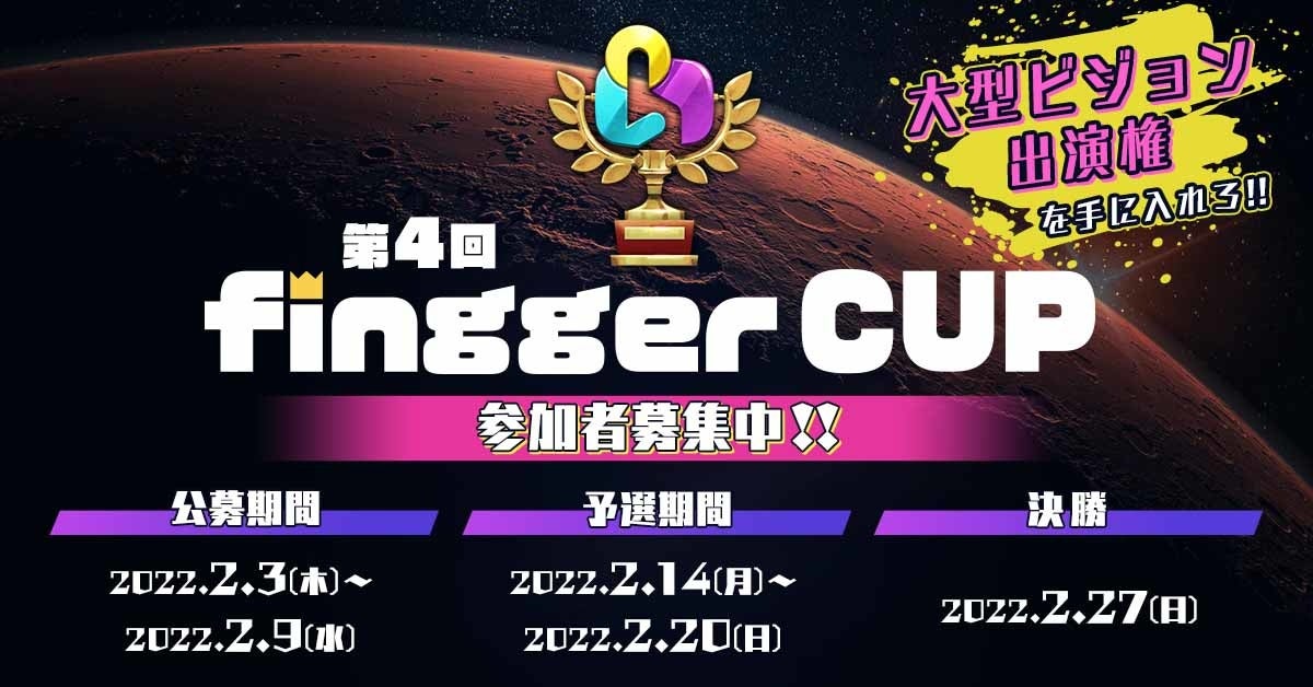 上記に伴い、本日より各配信者さまによる、本プロモーション映像への出演権を賭けた「第4回 fingger CUP」の開催をお知らせいたします。