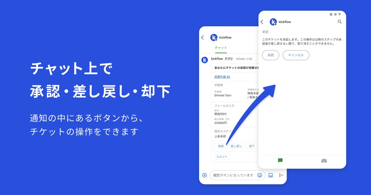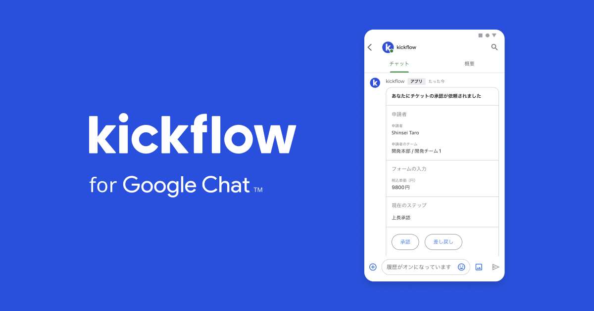 クラウドワークフローの「kickflow」、Google Chatへの通知・承認が可能に