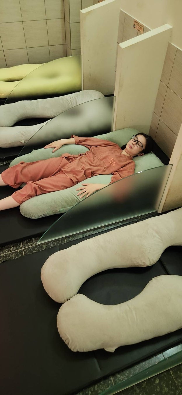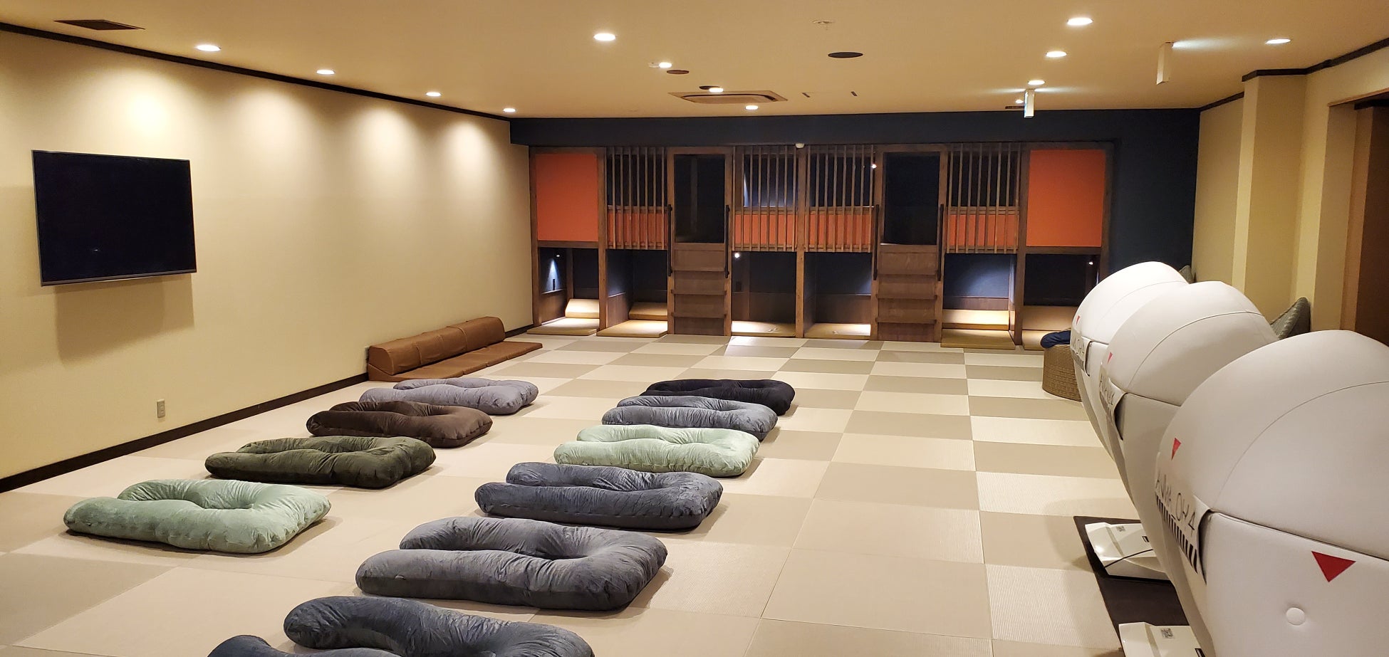 休憩スペースやリラクゼーションエリアに設置されたハグモッチを、湯上がり後のリラックスタイムに自由にお試しいただけます。