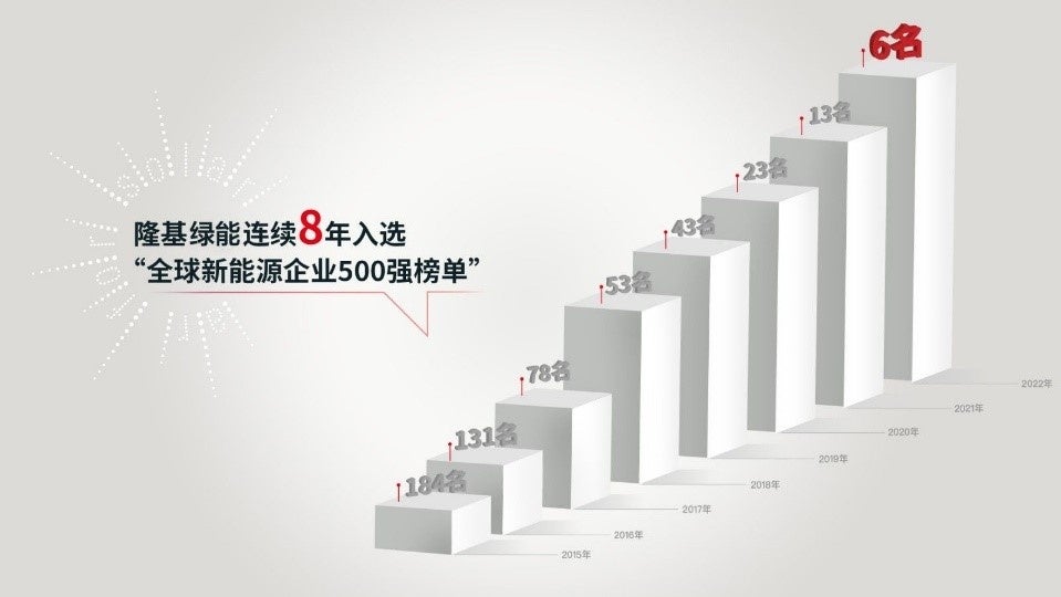 LONGiは、今回の2022年太原エネルギー低炭素発展フォーラムで発表された2022年「世界新エネルギー企業500社ランキング」において、クリーンエネルギー分野での健全な経営と継続的な発展が認められ、8年連続でリストにランクインし、さらに今回は初めてトップ10内の6位にランクインされました。