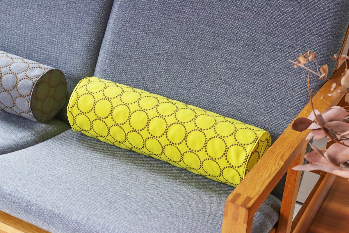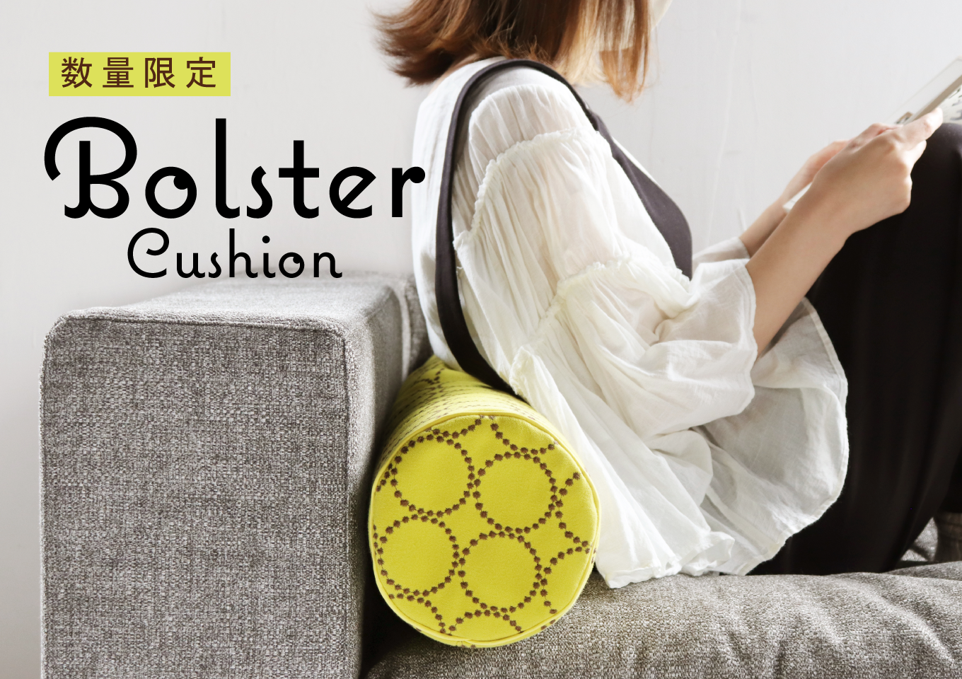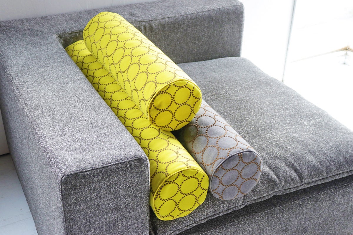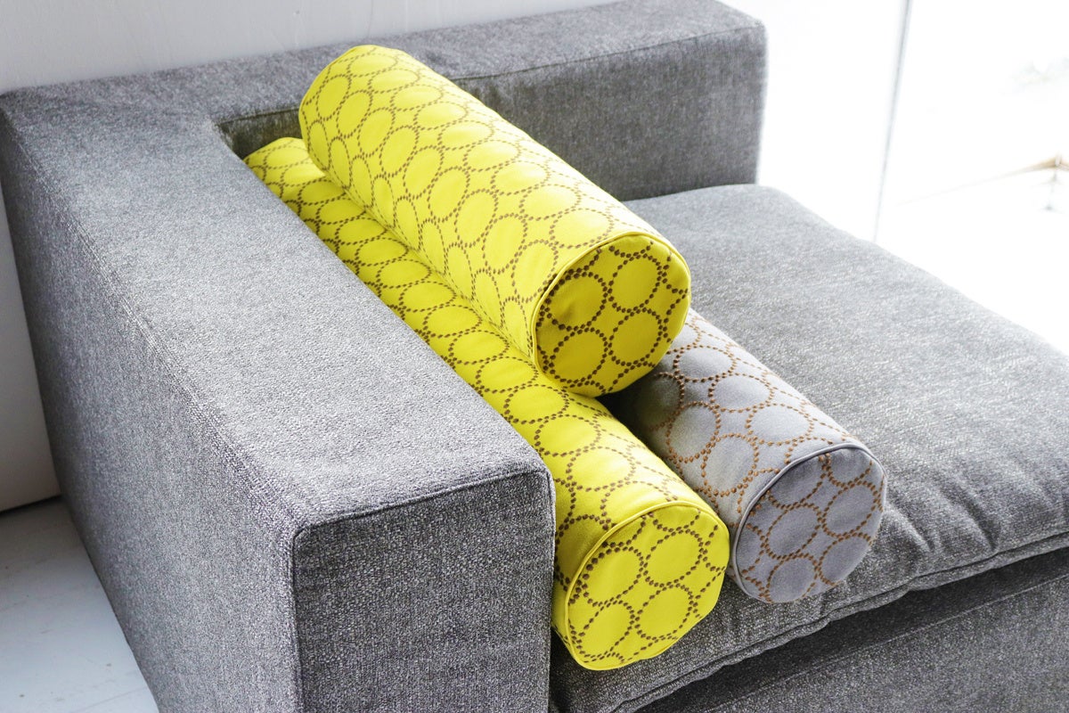 また、同時期に丸くて細長い筒状のボルスタークッションの受注会も開催します。こちらは使い方を考えれば考えるほど色々な生活シーンに使える万能アイテムで、丸い形状が何とも言えないほど可愛いいクッションです。ソファやベッドに置くだけでもオシャレなお部屋に変化します。