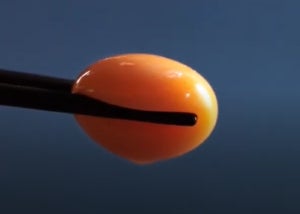 烏骨鶏は1週間~10日に1個しか卵を産みません。その卵は箸で持ち上がるほど弾力があり、卵黄の割合が多く、味はとても濃厚です。さらに、栄養価も高く、不老長寿の薬(薬鳥)ともいわれています。そのため、希少価値が非常に高く、シルクロッシュシリーズにはその希少な卵を100%使用しています。