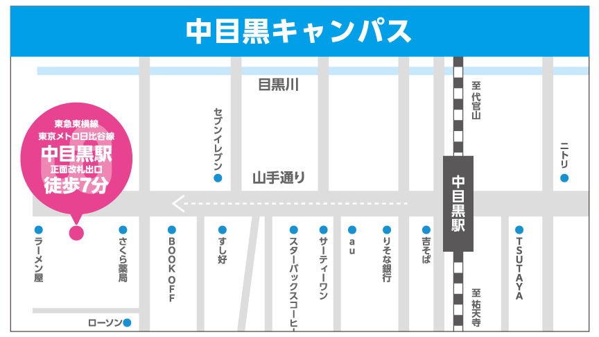 ■ワタナベエデュケーショングループ中目黒館(〒153-0043 東京都目黒区東山1-4-1)