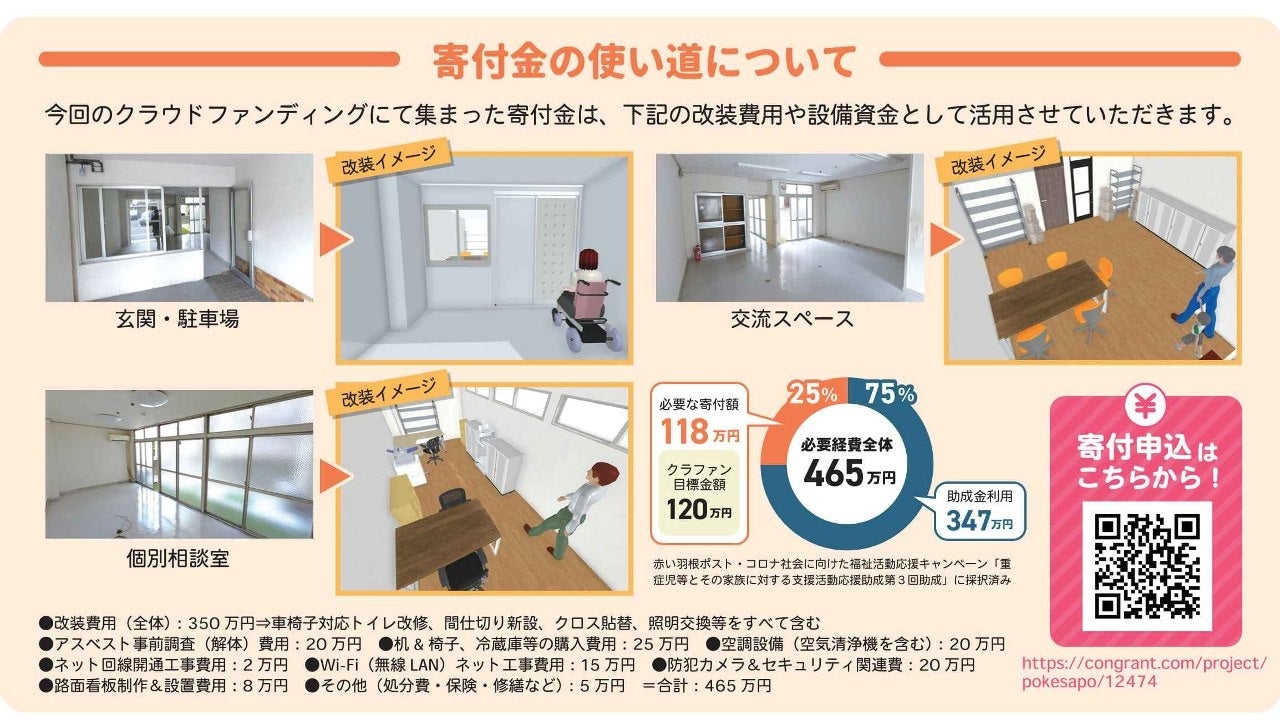 ※赤い羽根 ポスト・コロナ社会に向けた福祉活動応援キャンペーン「重症児等とその家族に対する支援活動応援助成 第3回助成」に採択いただき、改装に必要な347万円は助成金より支出します。