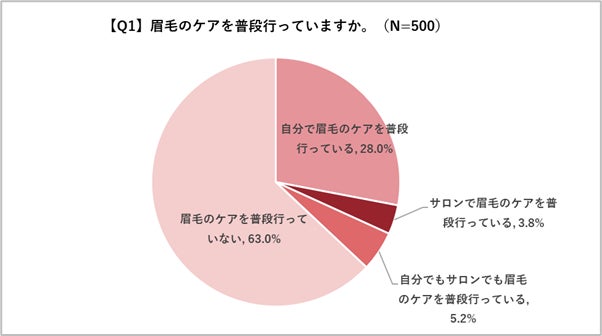 - 全体の約4割が「眉毛ケアを普段から行っている」と回答! - また10人に1人が、サロンで眉毛ケアをしていることが判明。