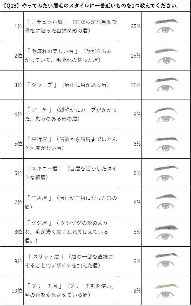 ■やってみたい眉毛のスタイルは、定番の「ナチュラル眉」に加え「毛流れの美しい眉」「シャープ眉」