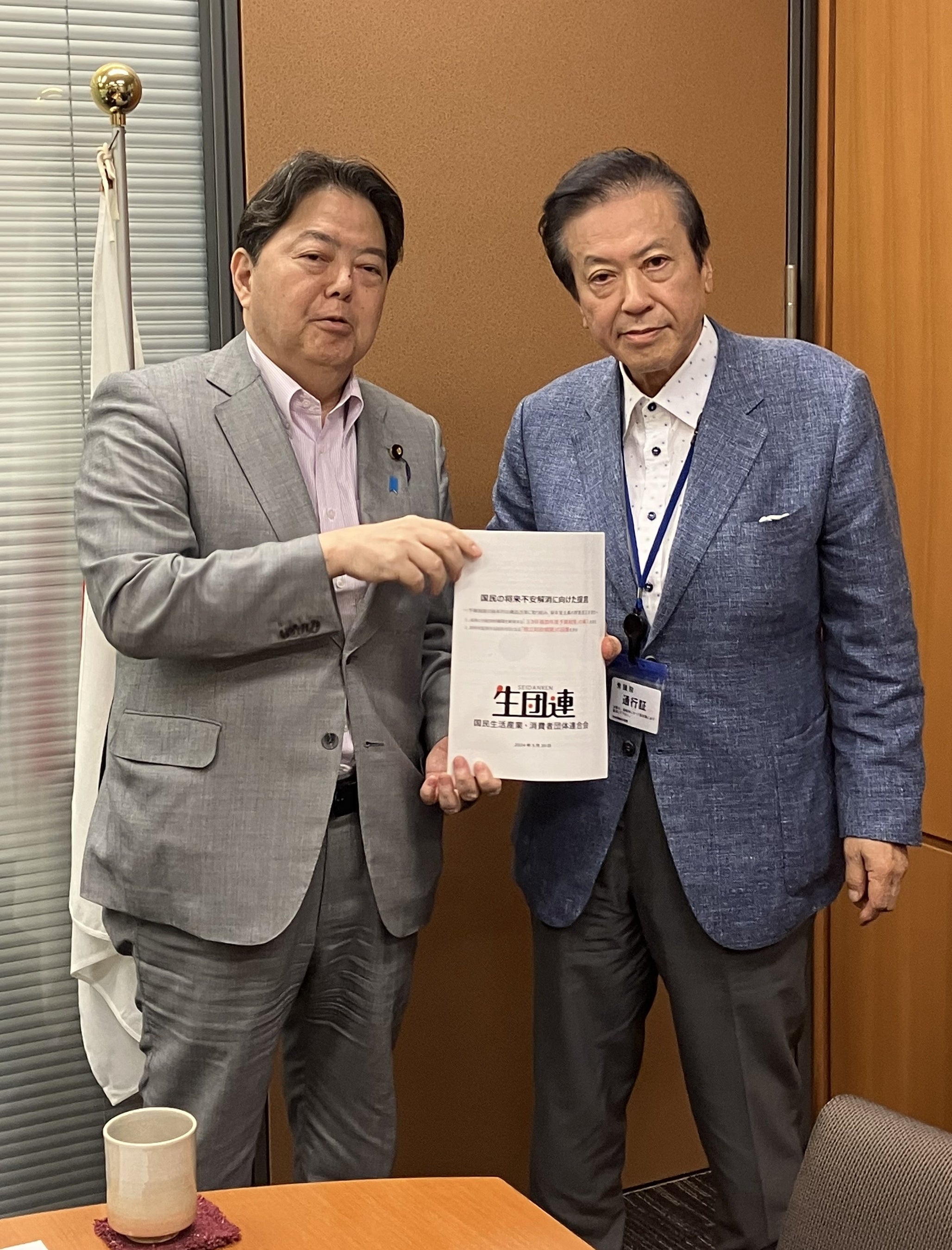 国家財政の見える化を目指して 生団連より林芳正内閣官房長官へ「国民の将来不安解消に向けた提言」を手交