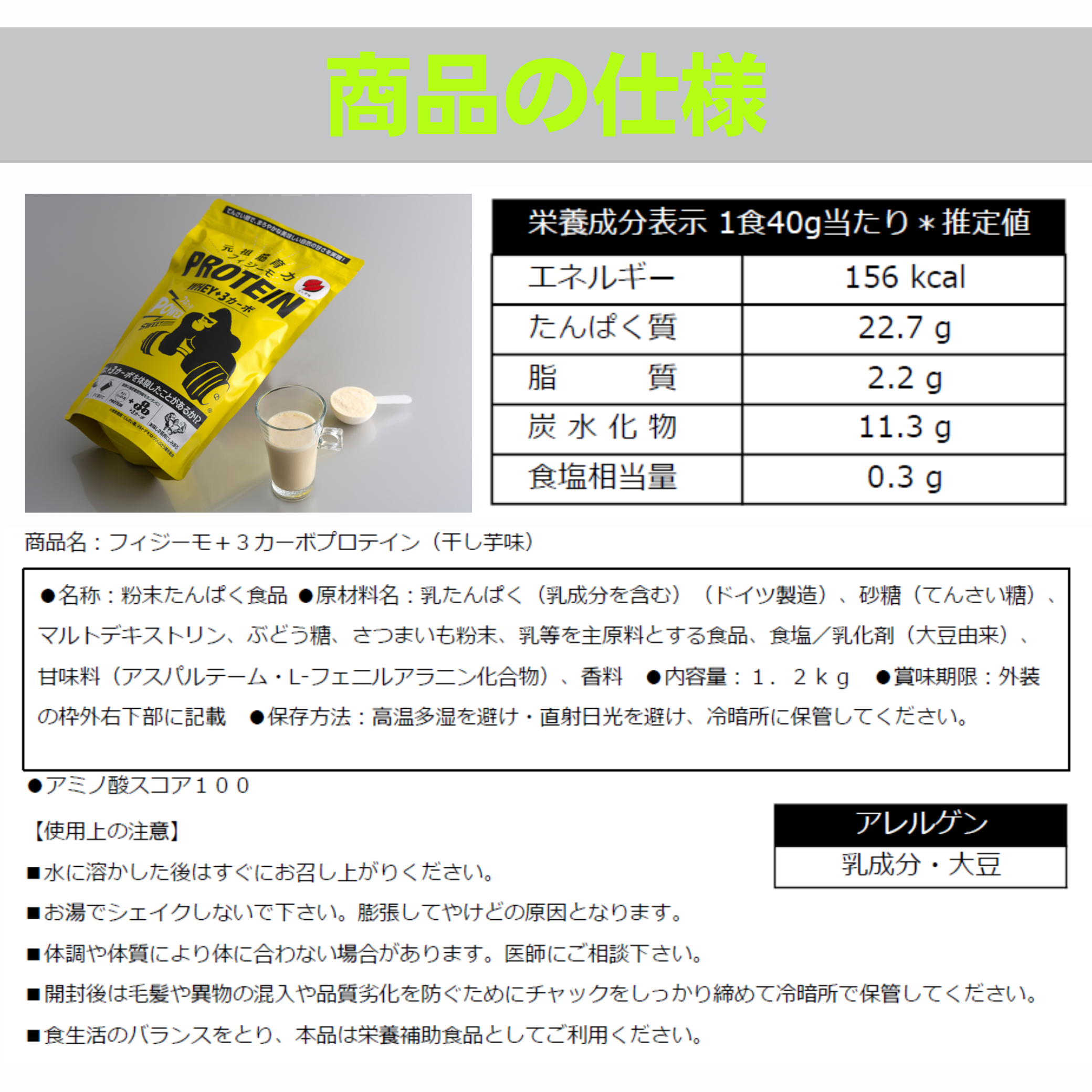 ■フィジーモ ホエイプロテイン+3カーボ 1.2kg(干し芋味)とは