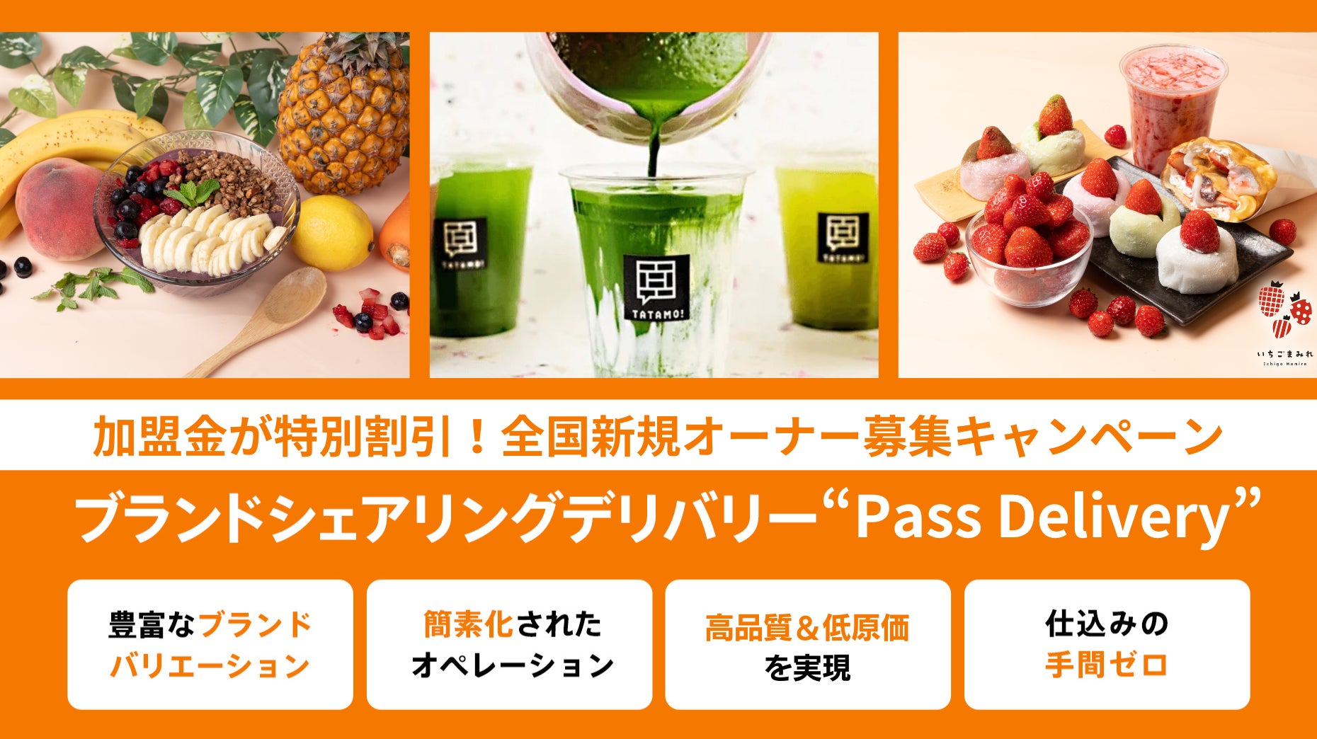 当社の「ブランドシェアリングサービス」は、既存店舗を運営しながら、イートインテイクアウト、フードデリバリーを活用し、飲食店様に新たな売上・収益を生み出すサービスです。当社ではブランド開発後、直営店舗にてテストマーケティングを行い、優良なブランドのみを店舗様にご案内しているため、多くの加盟店様が導入後に大きな売上収益を獲得されております。
