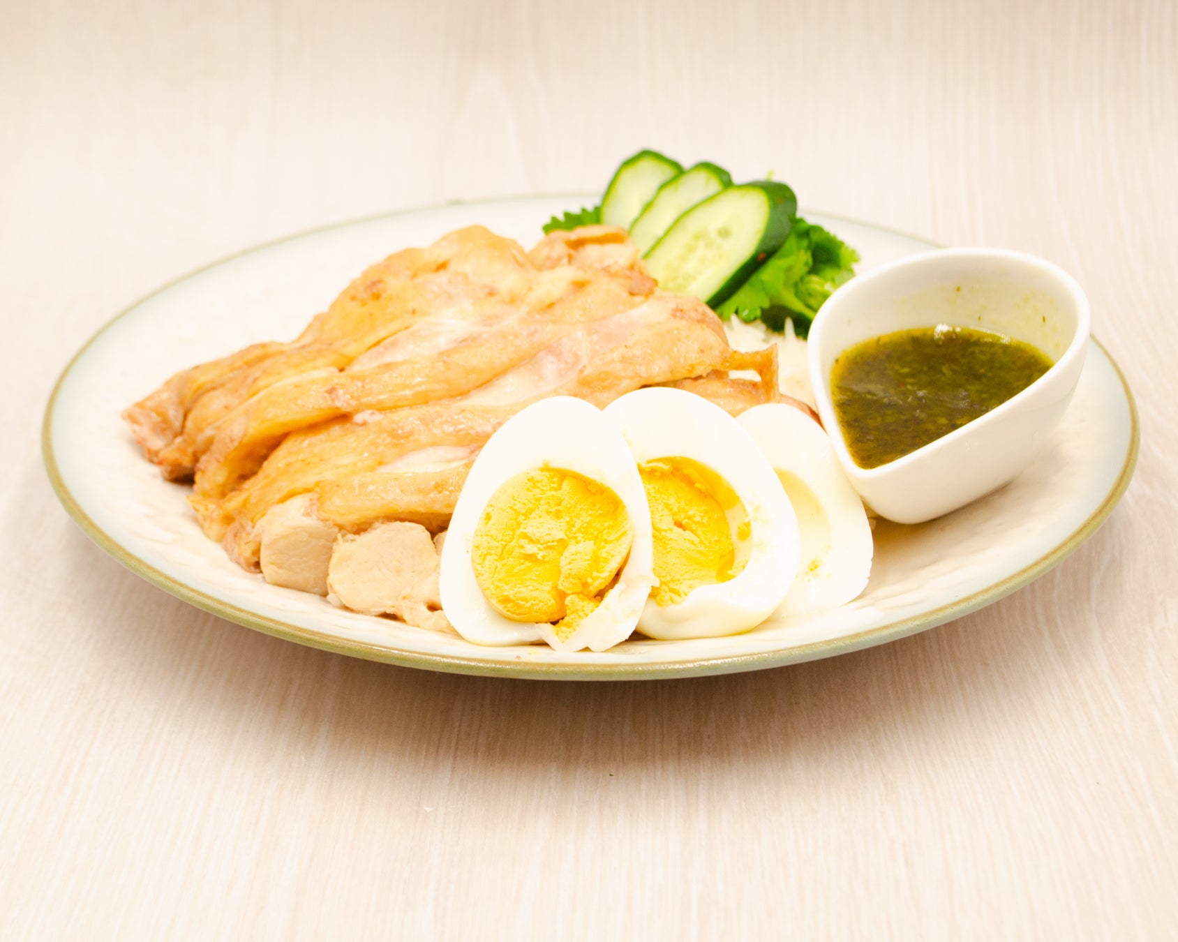 ②温泉卵カオマンガイ辛辣油ソース