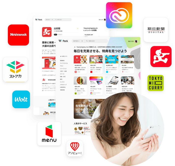 タウンドクターでは、リモートで活躍する管理栄養士の働きやすさを重視し、仕事に最適な環境を整えることで、一人ひとりの挑戦を支援することが重要だと考えています。新たに導入する「Perk」は会社ではなく従業員が自由に選べる新しい形の福利厚生です。コンビニやカフェなどで使えるギフトチケットが週1回最大無料で利用できるなど従来の福利厚生よりも気軽に利用でき、現代のニーズにマッチしているのが特徴です。スマホアプリを探す感覚で、スキルの研鑽から子育てサポート、プライベートの充実まで、個人の幅広いニーズにフィットする1000件以上のサービスを提供します。身近で利用しやすく、当社の働き方と密接に結びついており、今後の職場環境の向上に大きく期待します。