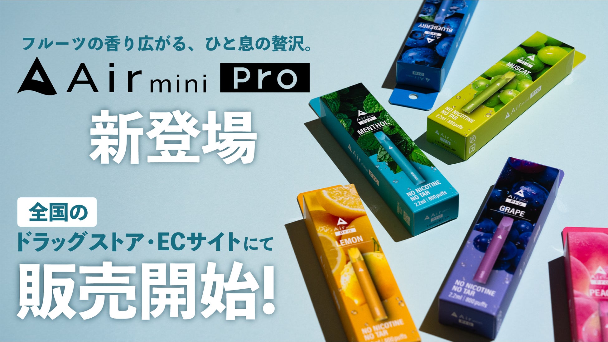 株式会社エアー(本社:東京都、代表取締役:坪松 青)は、全国(※1)のファミリーマートにて先行販売され、大変ご好評をいただいています『Air mini Pro(エアーミニプロ)』を2025年6月9日(月)より全国のドラッグストア約8,000店舗、及び主要ECサイトにて一般販売を開始いたしました。現在販売していますファミリーマートと合わせて、合計約17,000店舗でのお取り扱いとなります。