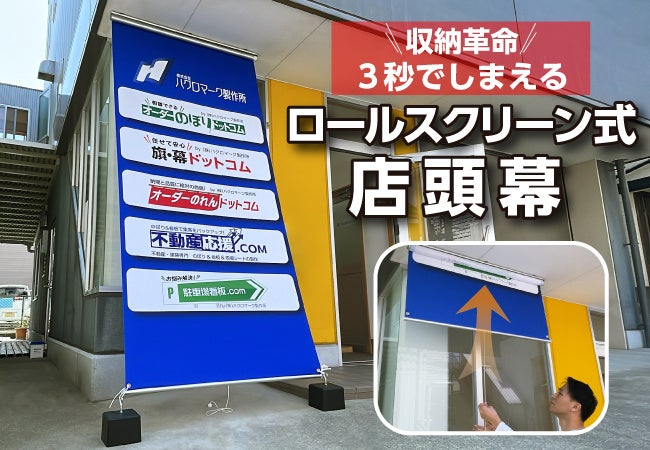 【収納革命】3秒でしまえる「ロールスクリーン式店頭幕」を6/1よりオーダーのれんドットコムにて発売開始