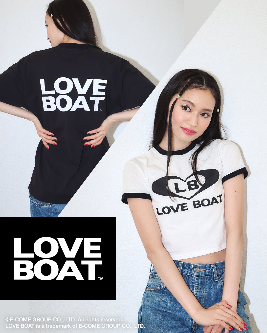 LOVE BOAT は、1994年にSHIBUYA109でスタートしたファッションブランド。1995 年以降、当時絶大な人気を誇るモデルやアーティストが「へそ出しルック」や「ミニスカート」などの個性豊かな LOVE BOAT の服を愛用しており、メディアに取り上げられた影響で爆発的にヒット。2000年代の“渋谷ギャルカルチャー”を代表するブランドとして若者から支持されていました。