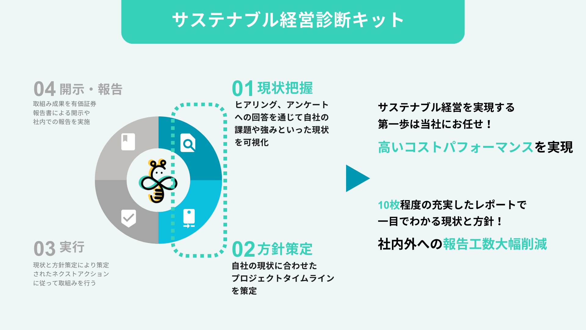 しかし、サステナビリティへの取り組みは複雑で、様々な課題に直面することがあります。そこで、弊社はサステナビリティに関心のある企業様の支援を目的として、自社の現状把握を行うことができるサステナブル経営診断キットを開発いたしました。