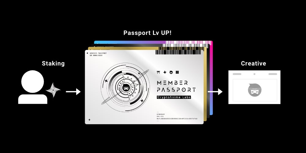 そして、ファンの保有するパスポートNFTはステーキングした手裏剣NFTの枚数に応じてランクやデザインが変化する仕様となっており、ファンは作品やキャラクターを応援すればするほど特別な特典(ユーティリティ)を受けることができます。