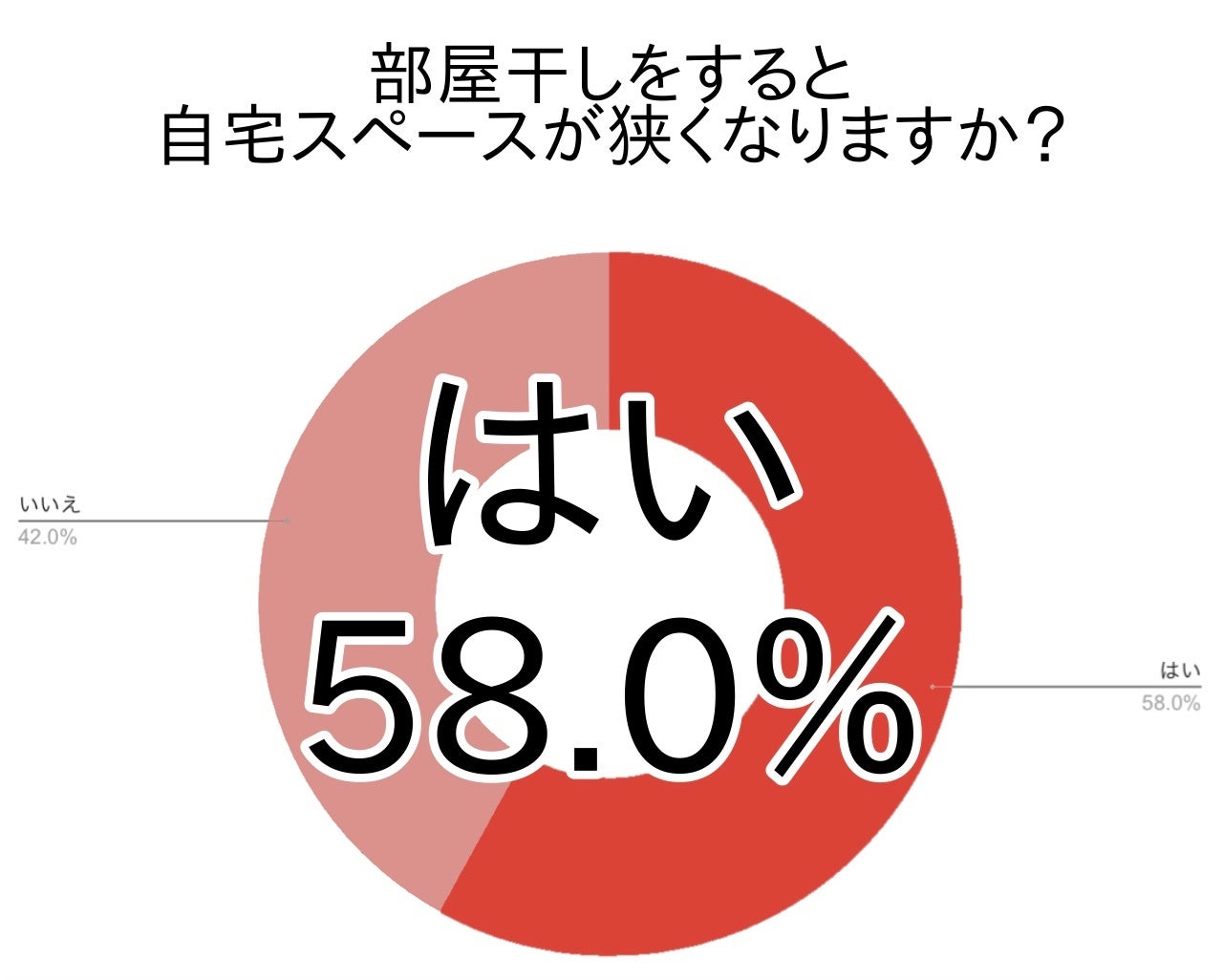 部屋干しをすることで自宅スペースが狭くなると答えた方は58.0%でした。