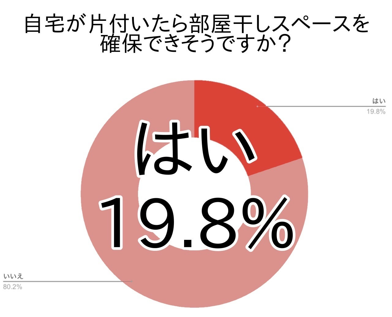 自宅が片付いてスペースが広がったら部屋干しスペースが確保できると答えた方は約2割(19.8%)でした。