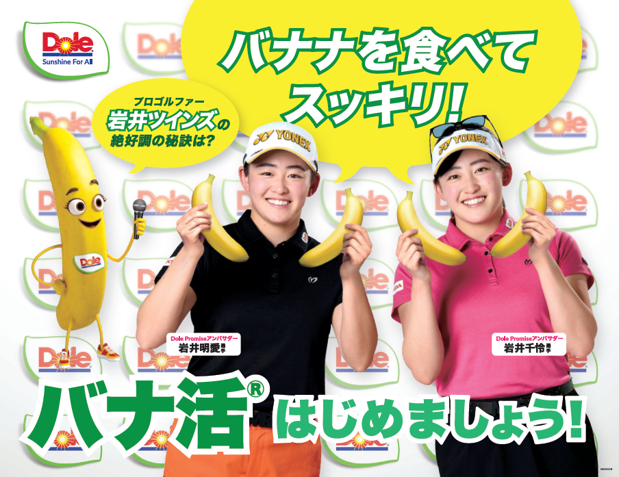 Doleバナ活🄬TV、WEB、店頭広告に出演中のプロゴルファー・岩井姉妹 多くのトップアスリートも食べているバナナパワーで史上初!双子姉妹揃って全米・全英女子オープン出場権を獲得